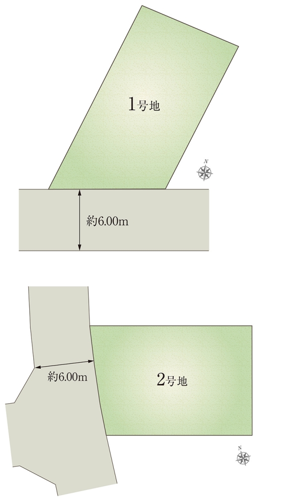 | 建物面積 | - | 土地面積 | 135.38m2(1号地)、170.42m2(2号地) 全て私道負担なし |