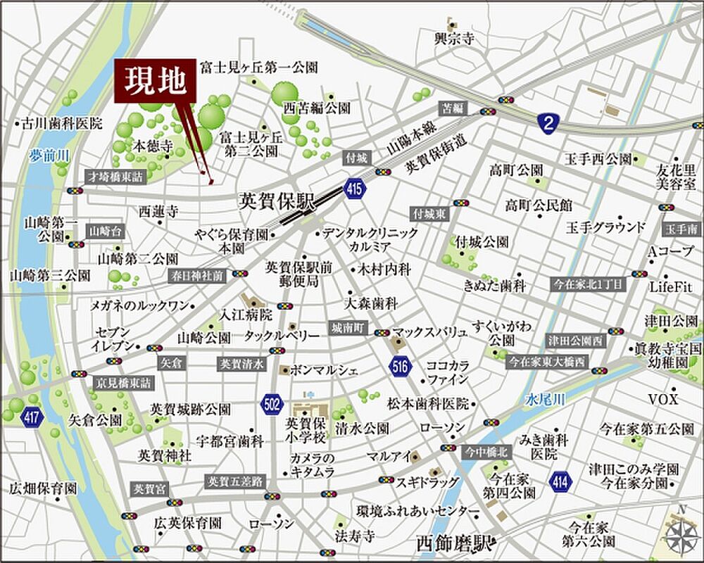 - ※地図上に表示される各種アイコンなどの情報は、おおよその所在地を表すものであり、物件・施設などの地点を保証するものではありません。