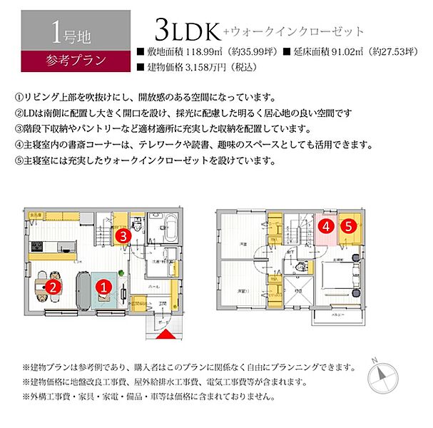 | 建物面積 | - | 土地面積 | 118.99m2(1号地) 私道負担なし |