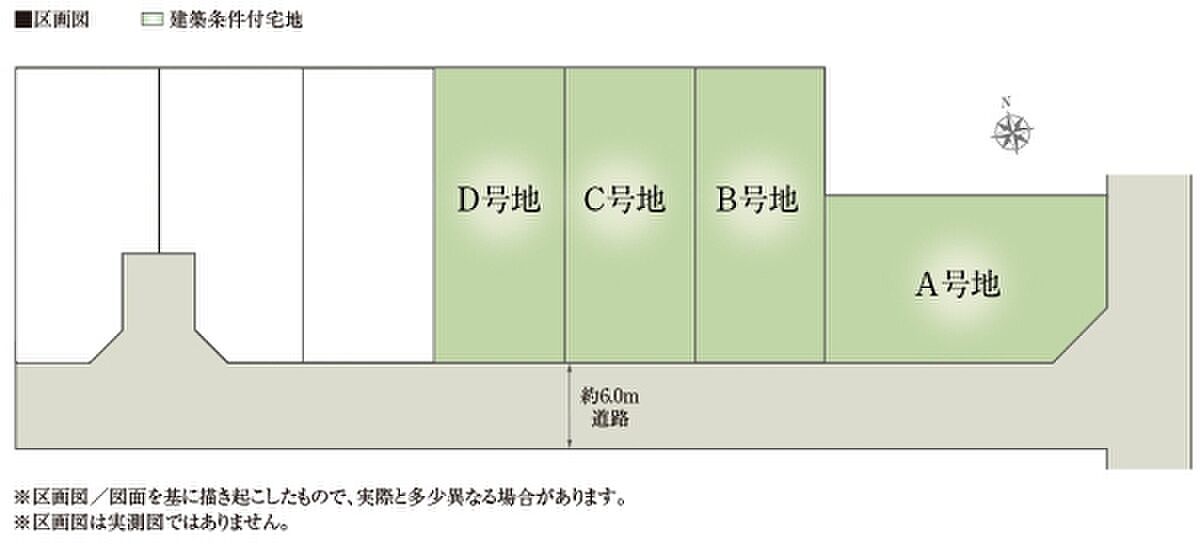 | 建物面積 | - | 土地面積 | 188.89m2(A号地)、160.05m2(B号地)、160.02m2(C号地)、160.02m2(D号地) 私道負担なし |