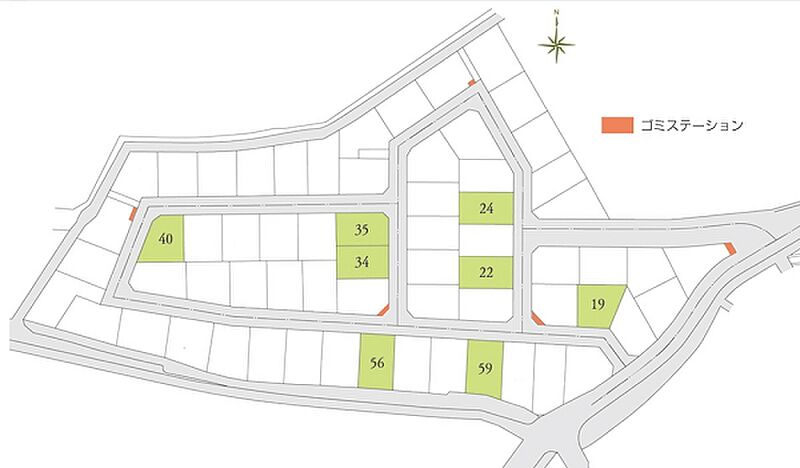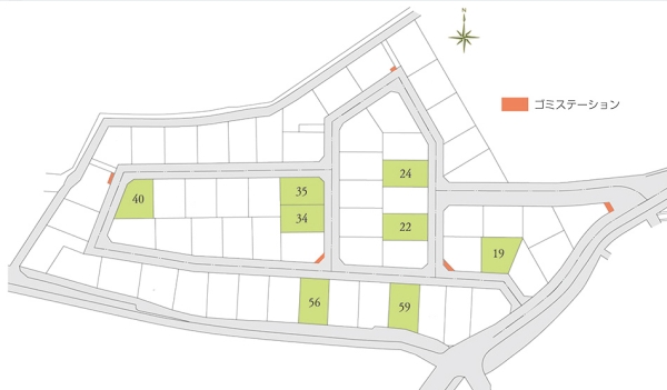 | 建物面積 | - | 土地面積 | 180.56m2(19号地)~206.65m2(56号地) 全て私道負担なし |