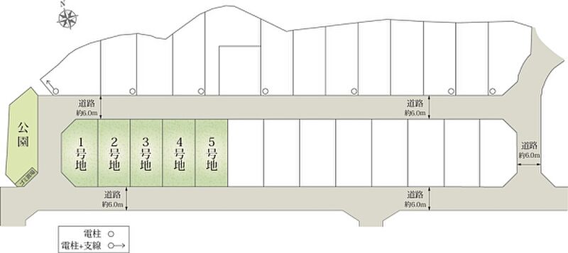 | 建物面積 | - | 土地面積 | 143.70m2(1号地)、140.83m2(2号地)、140.83m2(3号地)、140.82m2(4号地)、140.82m2(5号地) 私道負担なし |