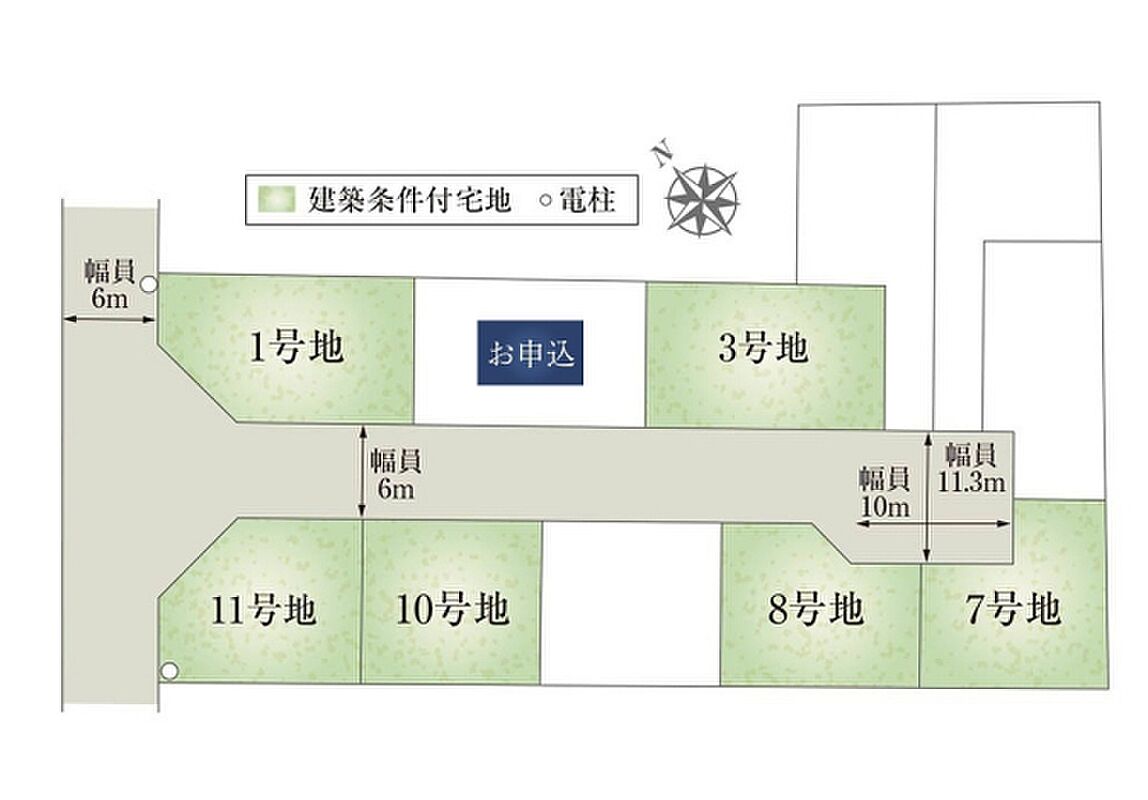 | 建物面積 | - | 土地面積 | 115.00m2(8号地)~134.52m2(3号地) 全て私道負担なし |