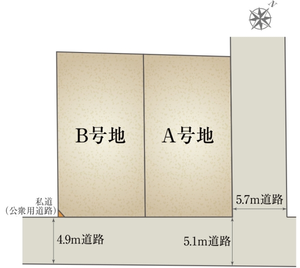 | 建物面積 | - | 土地面積 | 153.78m2 私道負担なし(A号地)、153.56m2 私道負担あり 1.74m2の負担持分(B号地) |