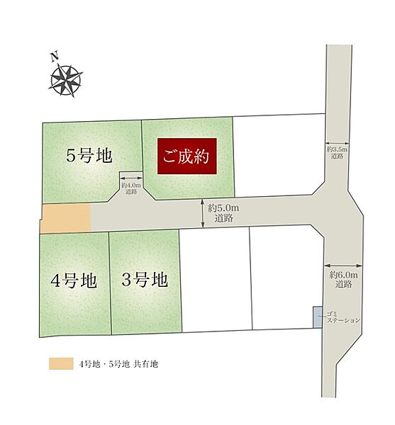| 備考 | ※ゴミステーション3.63m2について、7分の1ずつの持ち分があります。4号地・5号地は共有地41m2について2分の1の持分があります。 [建築条件付宅地分譲とは]この土地は、土地売買契約締結後3ヶ月以内に、大和ハウス工業株式会社と住宅の建築請負契約を締結していただくことを条件として販売いたします。この期間内に住宅を建築しないことが確定したとき、または住宅の建築請負契約が成立しなかった場合は、土地売買契約は白紙となり、受領した金銭は全額無利息で返却致します。詳細については、係員におたずねください。 | ||