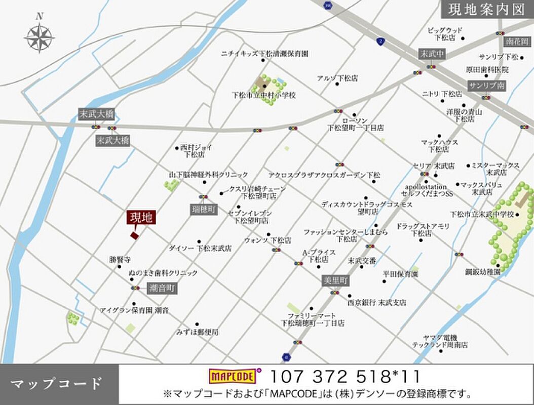 - ※地図、航空写真情報および地形ならびに周辺のお店・施設は、必ずしも現況を表すものではありません。