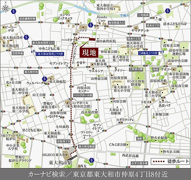 西武拝島線「東大和市」駅 徒歩21分~22分 西武多摩湖線「武蔵大和」駅 徒歩22分~23分 |