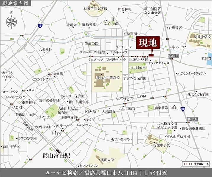 JR磐越西線「郡山富田」駅 徒歩28分~28分 JR磐越西線「郡山」駅 徒歩50分~51分 |