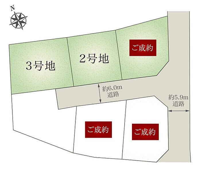 | 建物面積 | - | 土地面積 | 206.16m2(2号地)、254.81m2(3号地) 全て私道負担なし |