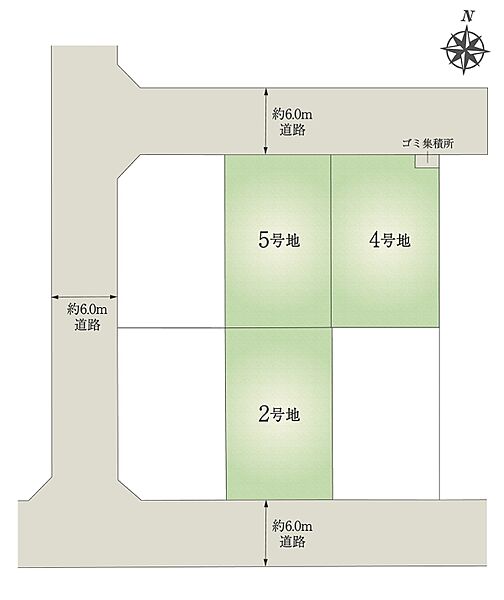 | 建物面積 | - | 土地面積 | 149.95m2(2号地)、149.95m2(4号地)、149.97m2(5号地) 私道負担なし |