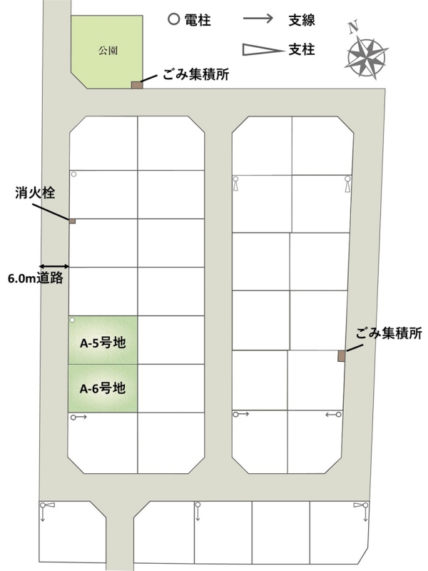| 建物面積 | - | 土地面積 | 157.34m2(A-5号地)、158.07m2(A-6号地) 全て私道負担なし |