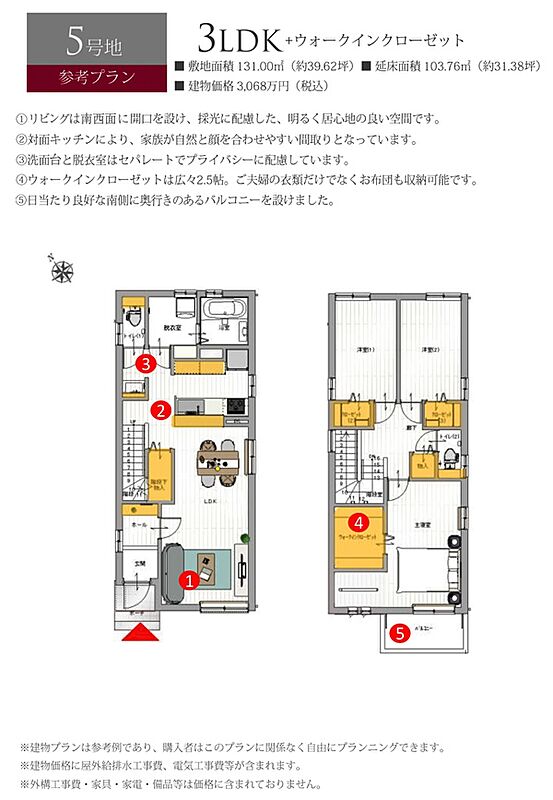 | 建物面積 | - | 土地面積 | 133.00m2(4号地)、131.00m2(5号地)、132.00m2(6号地) 私道負担なし |