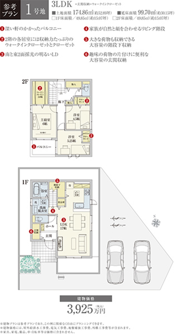 | 建物面積 | - | 土地面積 | 174.86m2(1号地) 私道負担なし |