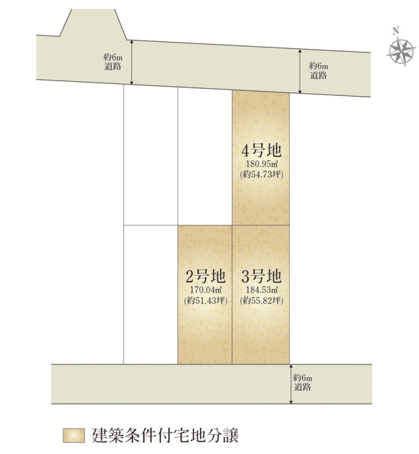 | 建物面積 | - | 土地面積 | 170.04m2(2号地)、184.53m2(3号地)、180.95m2(4号地) 私道負担なし |