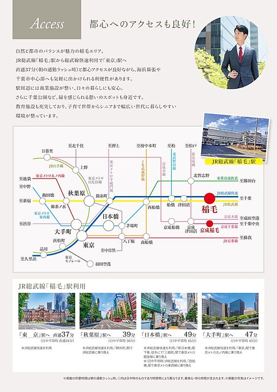 JR総武本線「稲毛」駅 徒歩14分~15分 京成千葉線「京成稲毛」駅 徒歩18分~19分 JR総武本線「千葉」駅 徒歩51分~51分 |