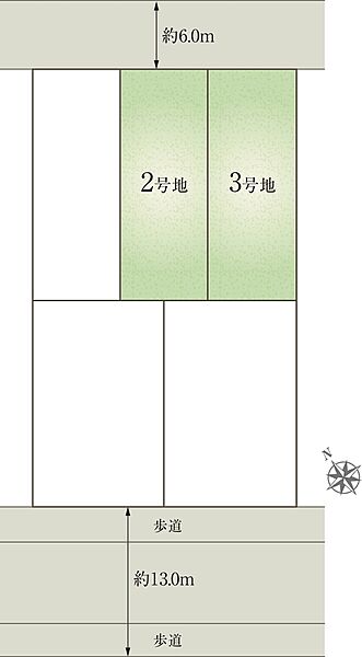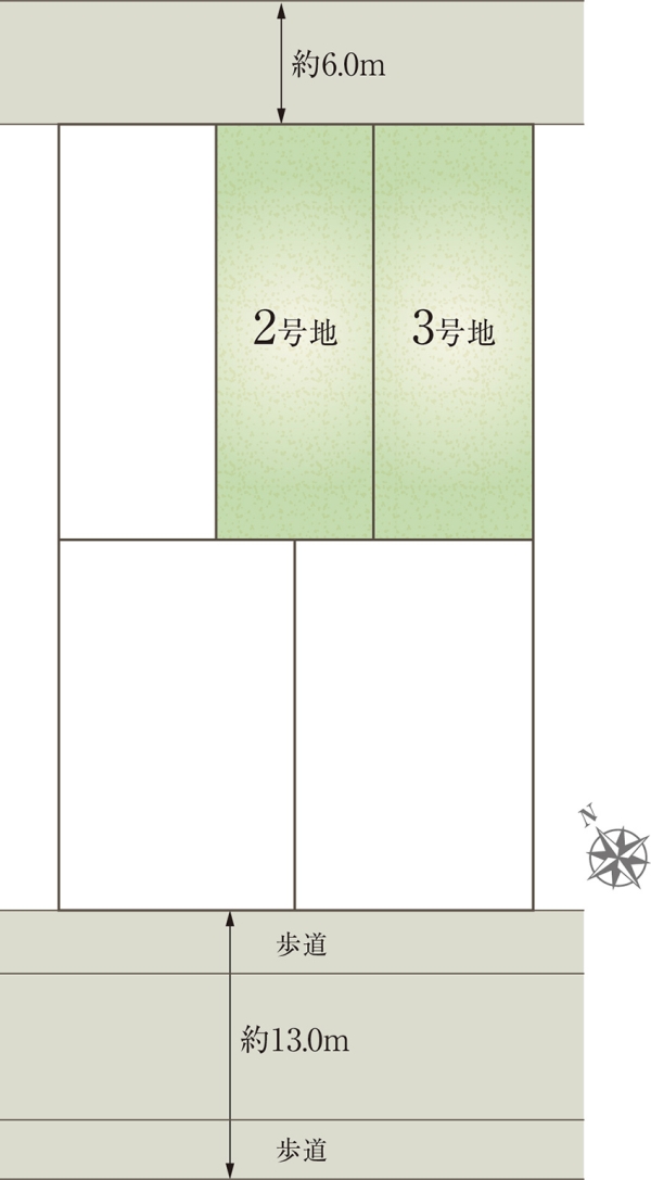 | 建物面積 | - | 土地面積 | 153.28m2(2号地)、153.21m2(3号地) 全て私道負担なし |