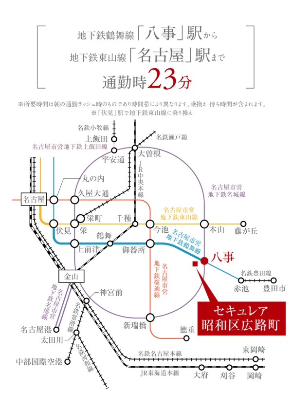 名古屋市営鶴舞線「八事」駅 徒歩9分~9分 名古屋市営名城線「八事」駅 徒歩9分~9分 |