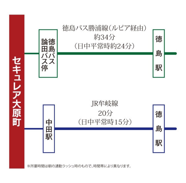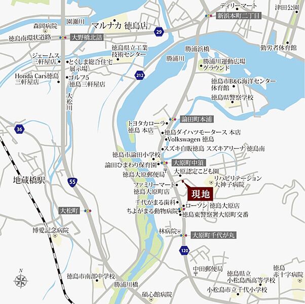 JR牟岐線「中田」駅 徒歩26分 JR高徳線「徳島」駅 徒歩92分 |