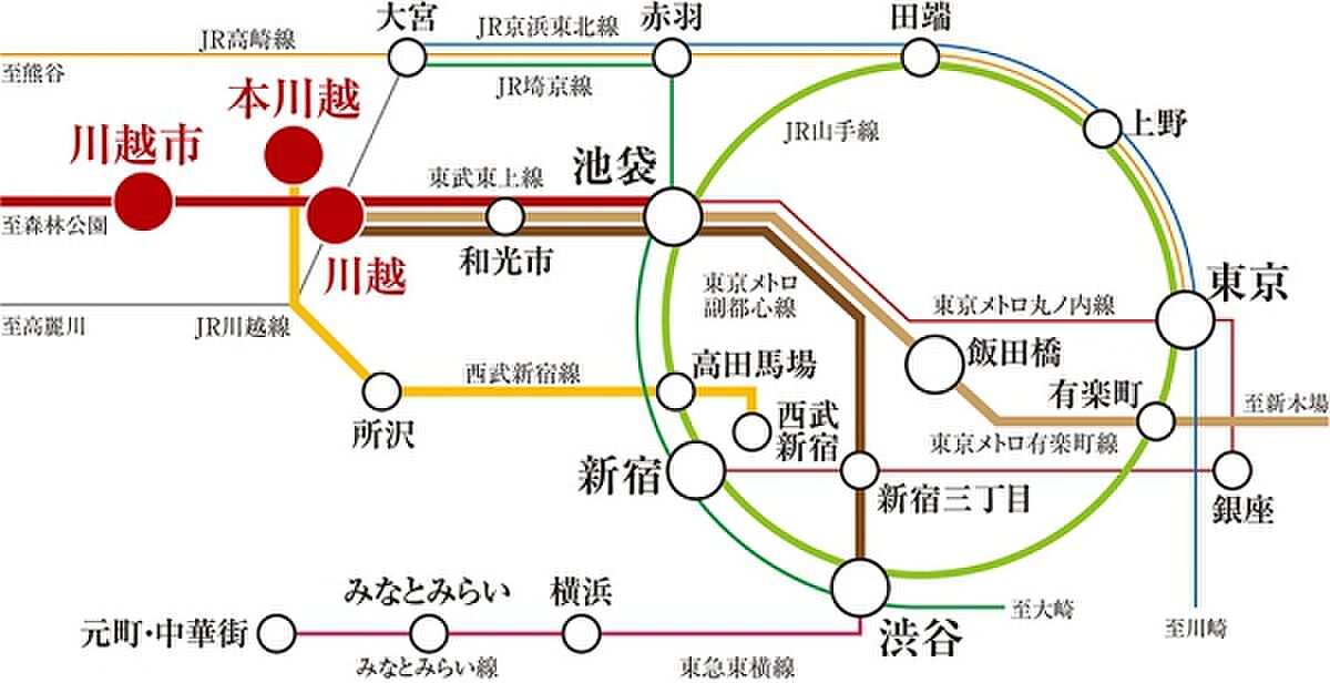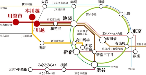 西武新宿線「本川越」駅、東武東上線「川越市」駅・東武東上線・JR川越線「川越」駅利用可能