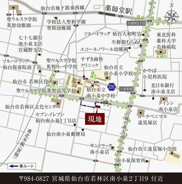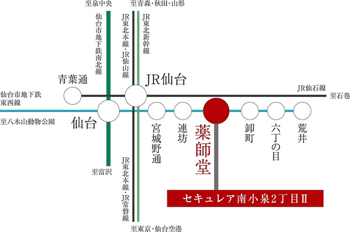 仙台市地下鉄東西線「薬師堂」駅 徒歩14分~14分 |