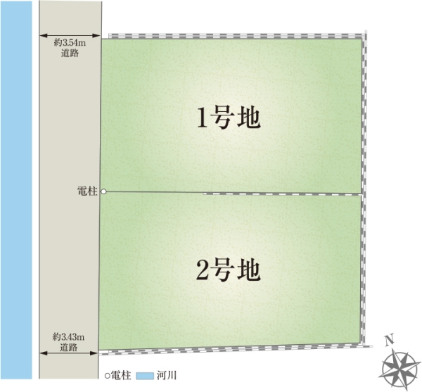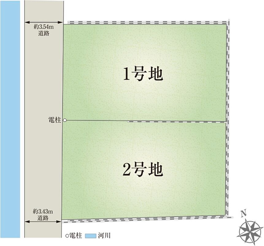 | 建物面積 | - | 土地面積 | 135.73m2(1号地)、135.74m2(2号地) 全て私道負担なし |
