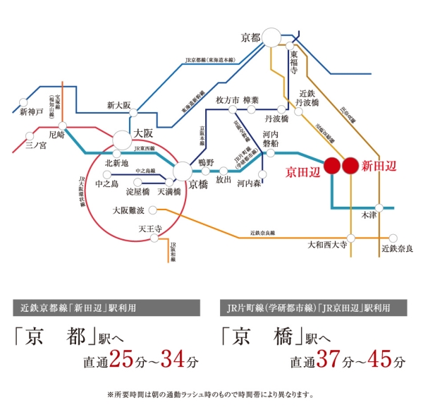 近鉄京都線「新田辺」駅 徒歩3分 JR片町線(学研都市線)「京田辺」駅 徒歩10分 |