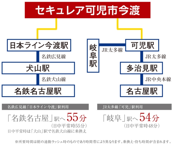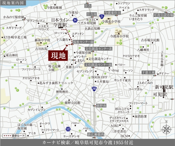 名鉄広見線「日本ライン今渡」駅 徒歩5分~6分 JR太多線「可児」駅 徒歩27分~28分 |
