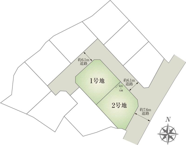 | 建物面積 | - | 土地面積 | 265.39m2(1号地)、263.61m2(2号地) 全て私道負担なし |