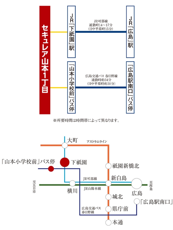 JR可部線「安芸長束」駅 徒歩12分~13分 JR可部線「下祇園」駅 徒歩17分~18分 |