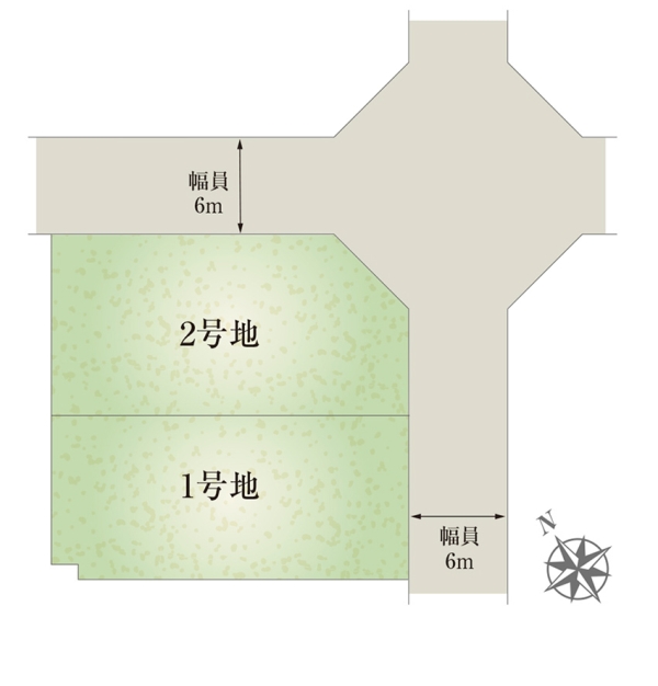 | 建物面積 | - | 土地面積 | 161.94m2(1号地)、154.85m2(2号地) 全て私道負担なし |