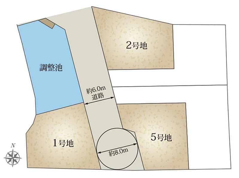 | 建物面積 | - | 土地面積 | 138.88m2(1号地)、142.29m2(2号地)、135.11m2(5号地) 私道負担なし |