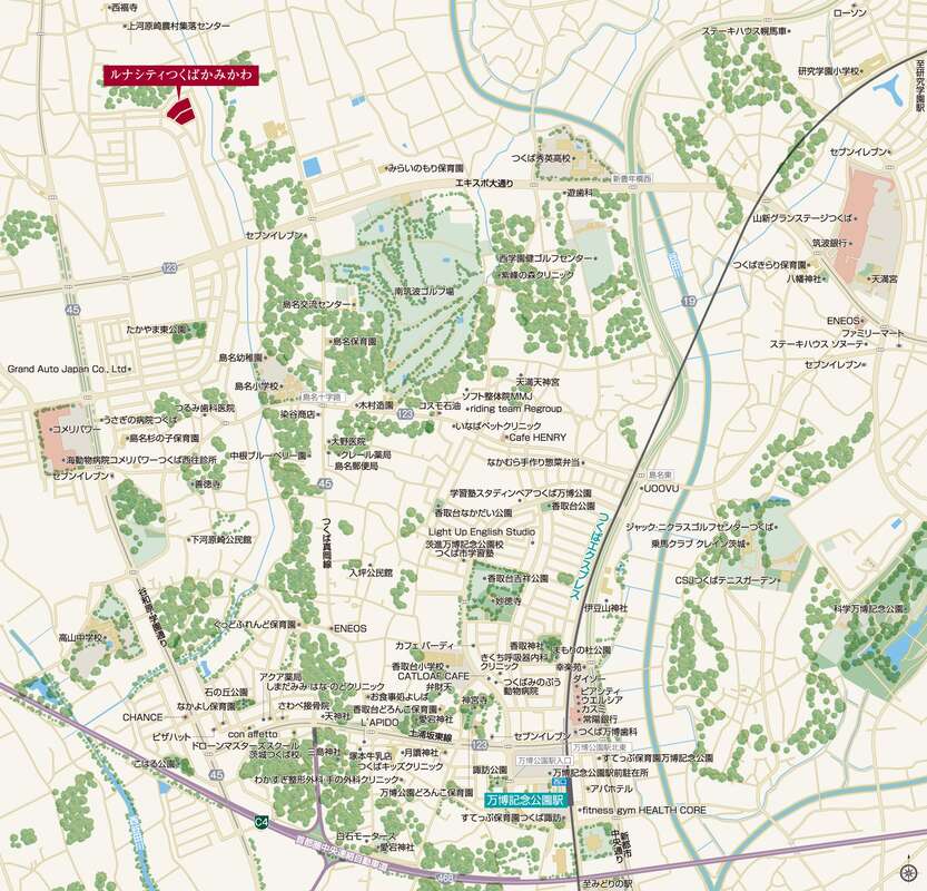 - つくばエクスプレス「万博記念公園」駅 車:3.6Km(約9分)つくばエクスプレス「研究学園」駅 車:4.5km(約10分)