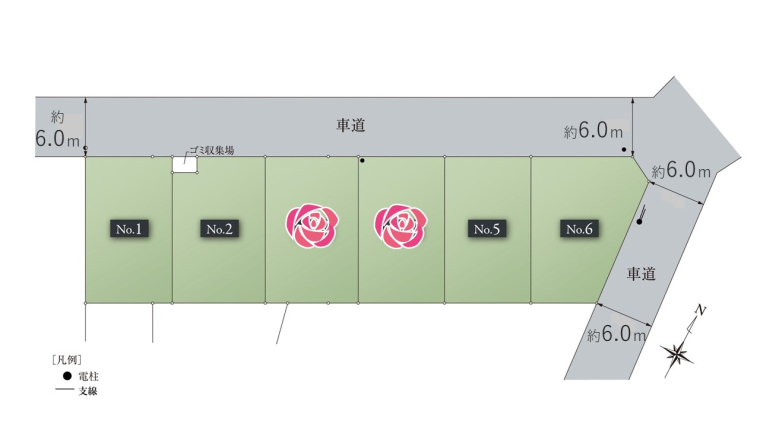 | 駐車場 | - | 道路の幅員 | 道路幅:6m/道路幅の備考:東側道路:6m、北側道路:6m |