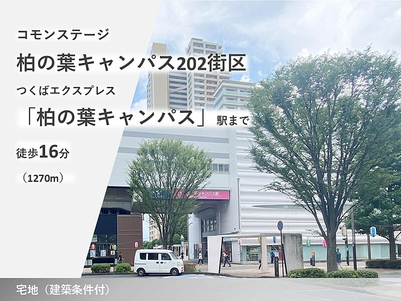 ■全7区画の建築条件付き分譲地■「柏の葉キャンパス」駅徒歩16分。■柏の葉キャンパス駅からは秋葉原駅(34分)・北千住駅(24分)へ乗り換えなしでアクセス可能(平日7時台、通勤時)