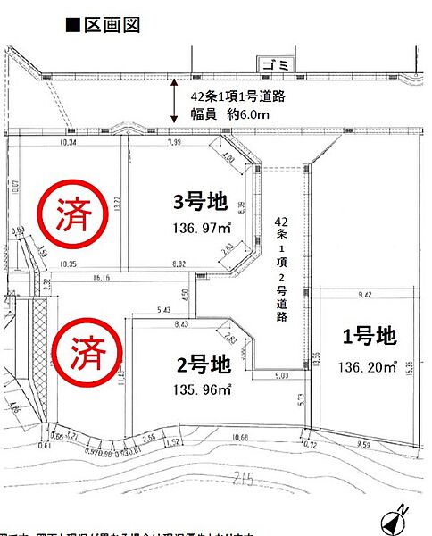 | 駐車場 | 1台 ~ 3台 | 道路の幅員 | 北側6.0m、東側5.0m |