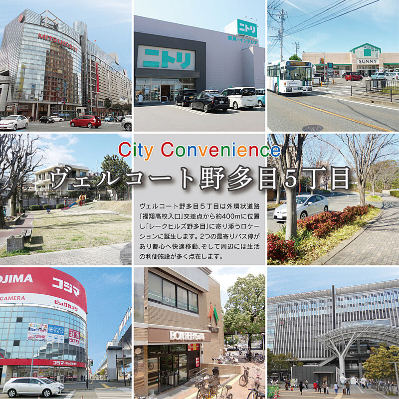 外環状道路「福翔高校入口」交差点から約400mに位置し「レークヒルズの野多目」に寄り添うロケーションに誕生します。