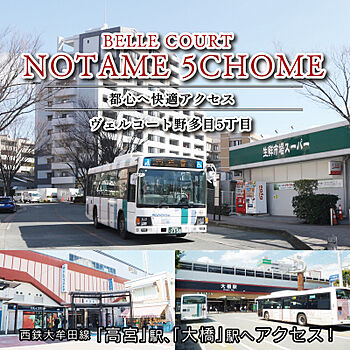 西鉄天神大牟田線「大橋」駅 乗車28分「西鉄バス「レークヒルズ入口」停」停歩5分 徒歩5分 西鉄天神大牟田線「高宮」駅 乗車19分「西鉄バス「野間四角」停」停歩4分 徒歩4分 |