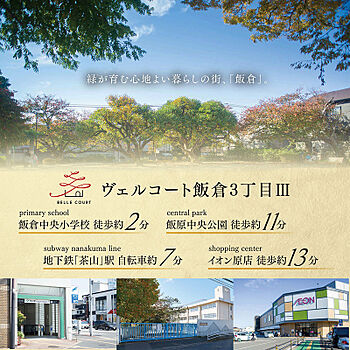 ヴェルコート飯倉3丁目から 》》》【教育機関】・「飯倉中央」小学校…徒歩2分・「原」中学校…徒歩6分・どれみ保育園…徒歩2分 【交通機関】・西鉄バス「原農協前」停…徒歩6分・地下鉄七隈線「茶山」駅…自転車7分 【ショッピング】・にしてつストアレガネット飯倉店…徒歩8分・サンリブBUONO原店…徒歩10分 【公園】・飯倉公園…徒歩4分