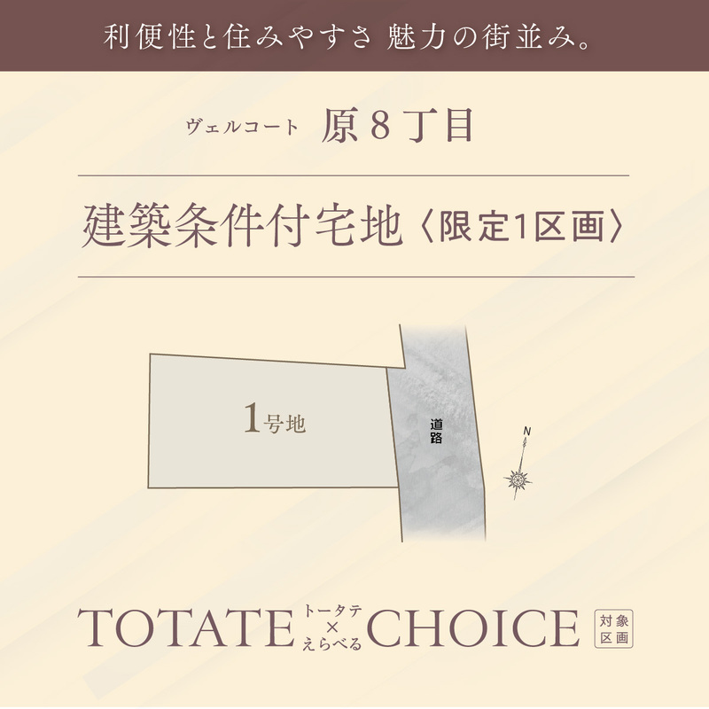 建築条件付き土地 住まいのトータテ ヴェルコート原8丁目【建築条件付土地】