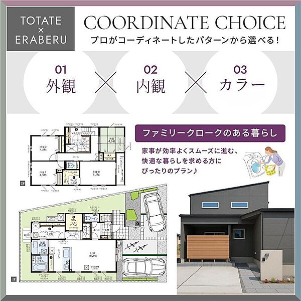 ◆トータテ×えらべる◆注文は時間と手間がかかる、建売だとこだわりが反映できない。そんなご家族にぴったり!厳選されたプランから外観・内観・設備のカラーをお選びいただけます。