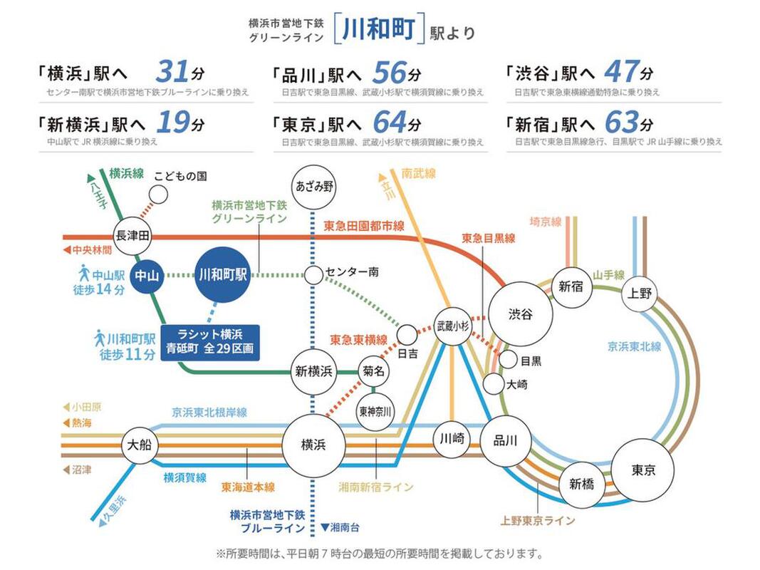横浜市営地下鉄グリーンライン「川和町」駅 徒歩11分~11分 JR横浜線「中山」駅 徒歩14分~14分 横浜市営地下鉄グリーンライン「中山」駅 徒歩14分~14分 |
