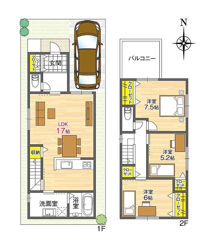 - ※完成予想図やCG合成画像は、門塀・植栽・庭・外観等、実際とは多少異なる場合があります。