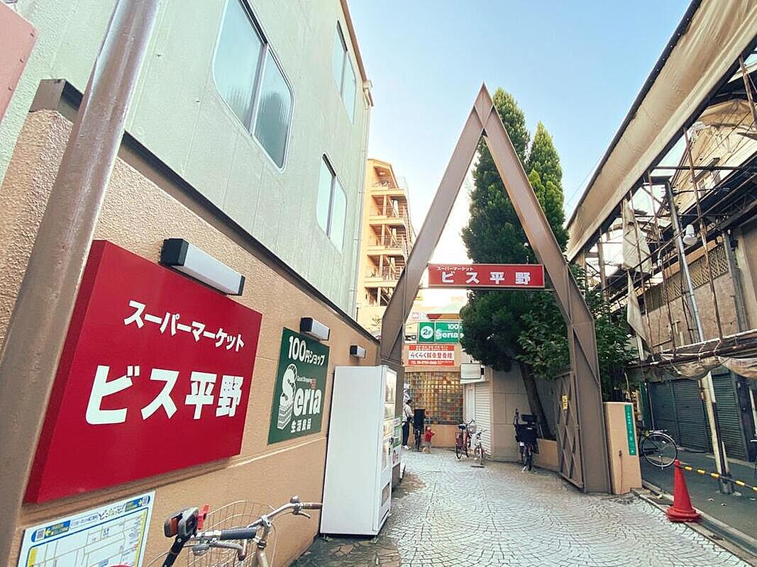■ビス平野まで徒歩7分(約550m)、万代平野流町店まで徒歩8分(約600m)、スーパーサンエー平野店まで徒歩9分(650m)。