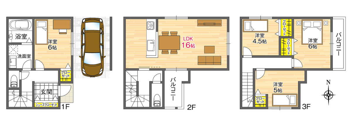 魅力1 【南東角地で日当たり良好◎LDK約16帖の3階建「4LDK」プランをご用意!】