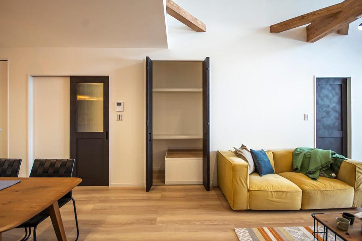 暮らしのメイン空間であるLDKの中央に縦長の収納スペースを設け...