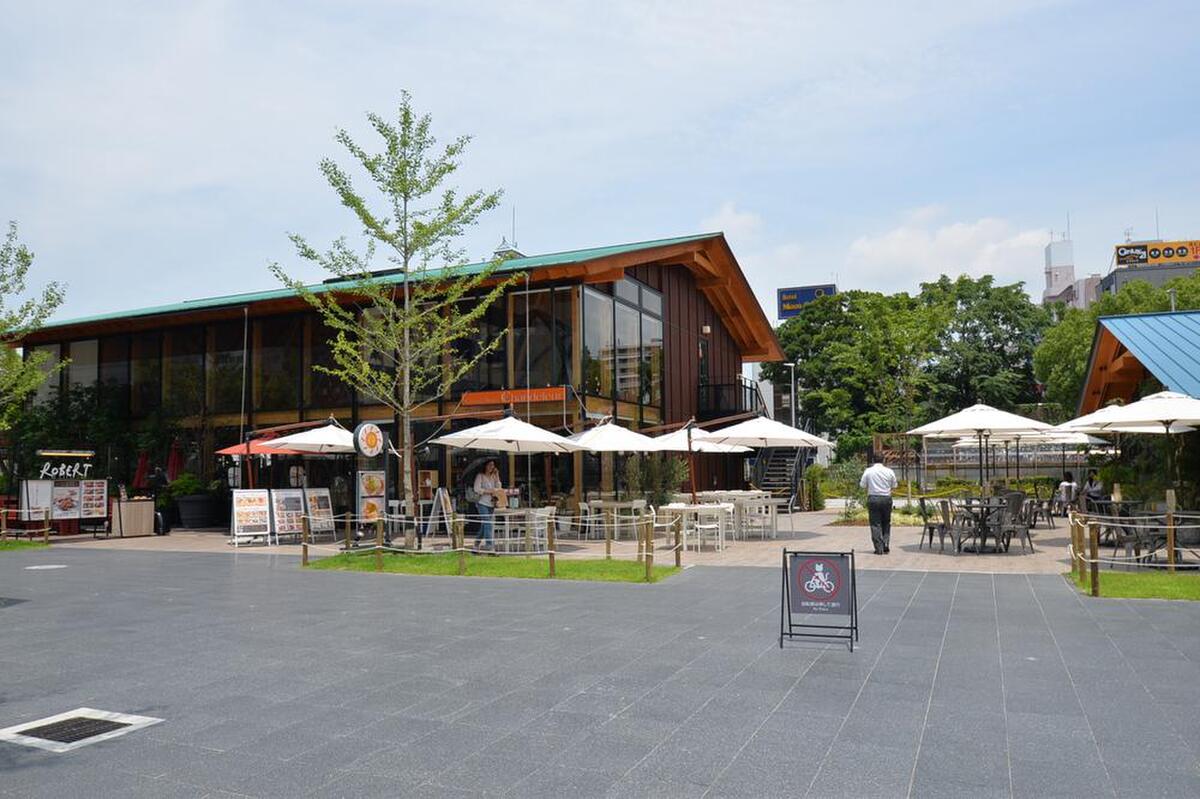 天王寺公園のエントランスにある、カフェやレストラン、フラワーシ...