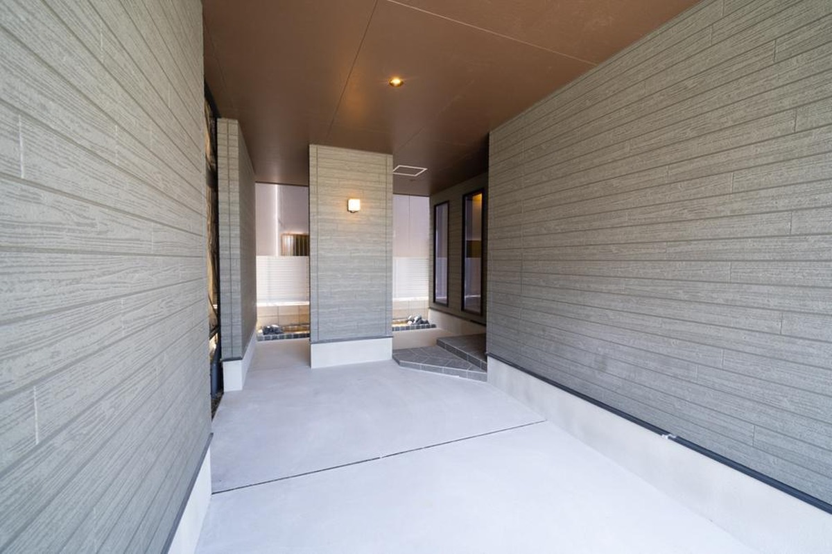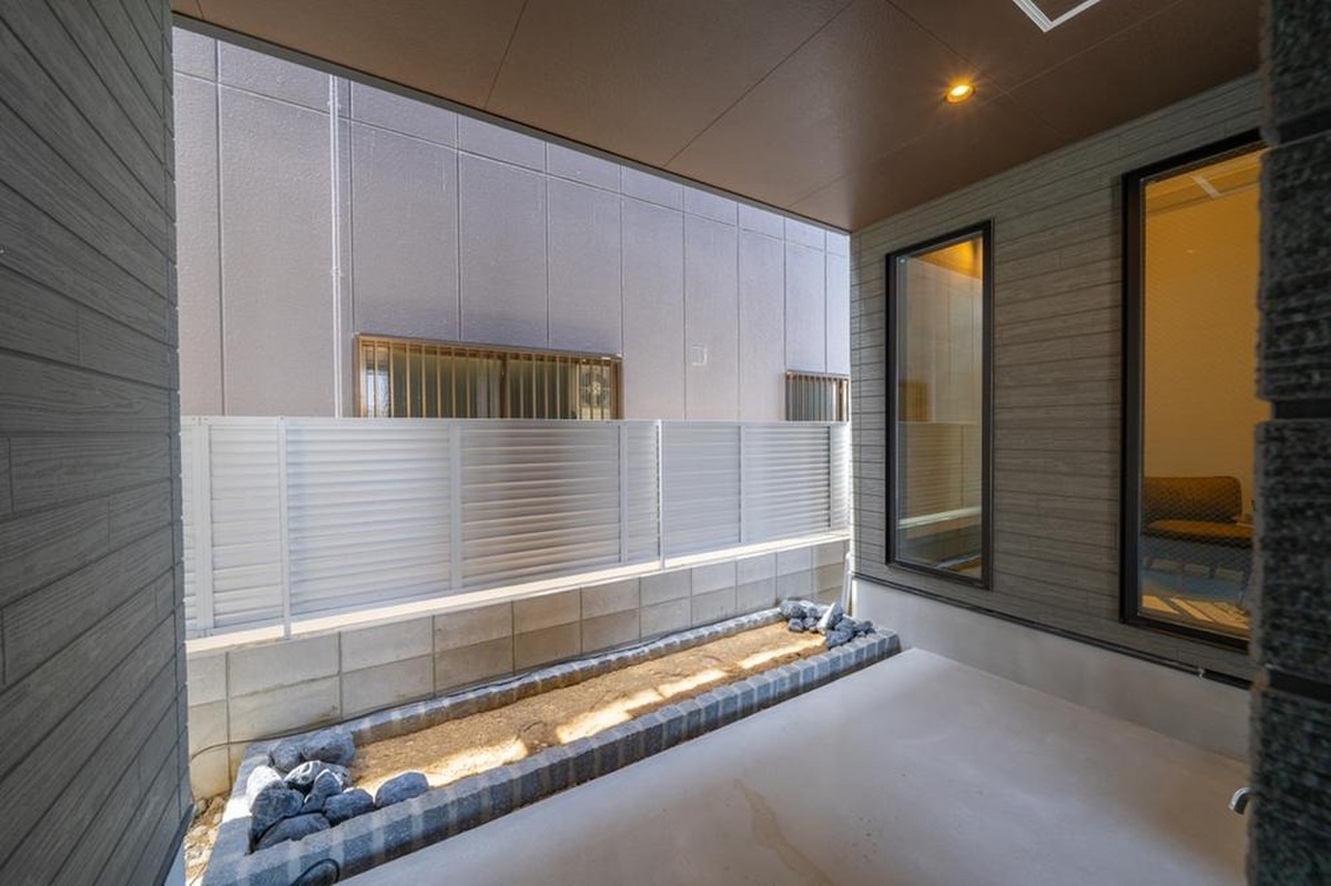 インナーガレージ奥に設けたプライベート空間。植栽スペースもある...