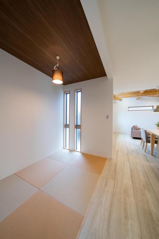 LDKの一角に設けたタタミコーナー。キッチンと対面なので、家事...