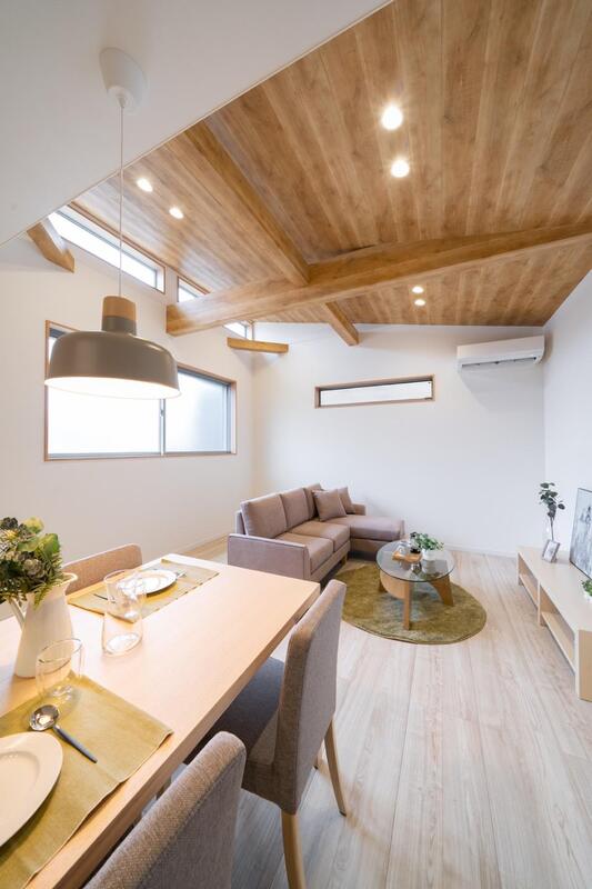リビングの天井は勾配がついており、広がりと開放感が得られます。...