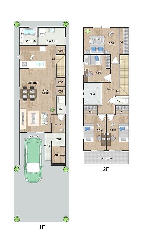 ・プライバシーと彩光を確保できる2階リビングのプラン